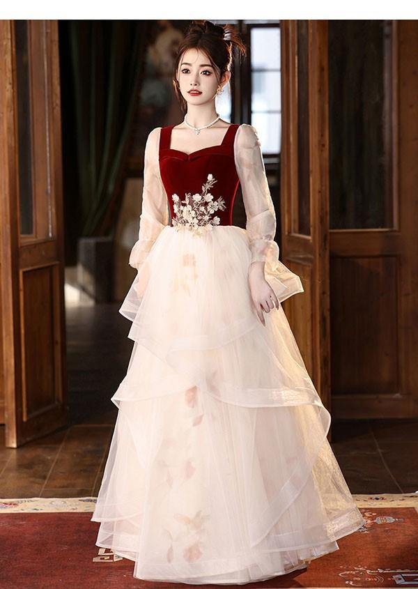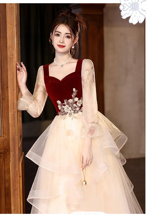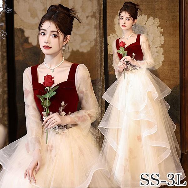 ドレス 大人 ピアノ 発表会 ロング丈 ぽっちゃり 大きいサイズ イブニングドレス 演奏会 ピアノ発表会 袖付き ワンピース Aライン ステージドレス 二次会 女子会 成人式 パーティードレス 大人可愛い bg070zezezr