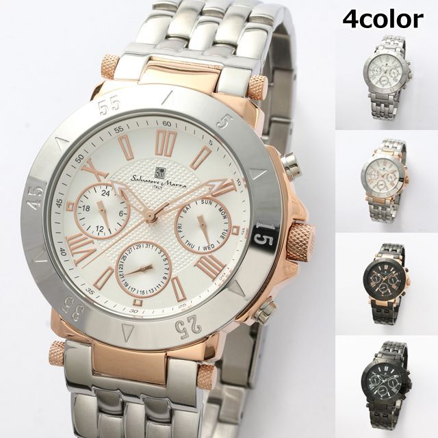 Salavatore Marraサルバトーレマーラ オールステンレス マルチカレンダーウォッチ「SM22108」 (メンズ 時計 クオーツ ステンレスベルト)