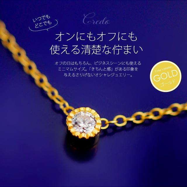 信念という意味のCREDO(クレド)という名のついたこのジュエリーは、胸の奥に秘めた自分らしい信念をいつでもしっかりと持ち続けるという意味を込めて作られたPADMAブランドのジュエリーです。さりげなく着けていただくジュエリーをコンセプトにした華奢なスタイルで、細いチェーンに合わせたミニマムサイズの1粒ストーンのデザインに仕上げました。セットしたストーンは、宝石の頂点に君臨するダイヤモンドの特質の多くを持ち合わせた輝きが特徴で、圧倒的な透明感とクオリティで身に着ける女性を引き立たせてくれます。シンプルでどんな年齢でも使いやすいデザインだから、プレゼントとしても喜んでもらえるベーシックスタンダードなジュエリーです。