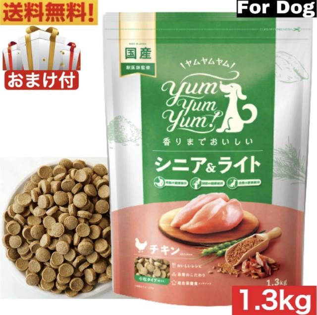Yum Yum Yum! ヤムヤムヤム シニア&ライト チキン ドライタイプ 1.3kg 正規品 国産素材 ドッグフード ドライフード 保存料 着色料 香料等 合成添加物 一切不使用 新鮮 国産 無添加 ヒューマングレード 小粒 犬 成犬用 アダルト 老犬用 シニア犬 お試し