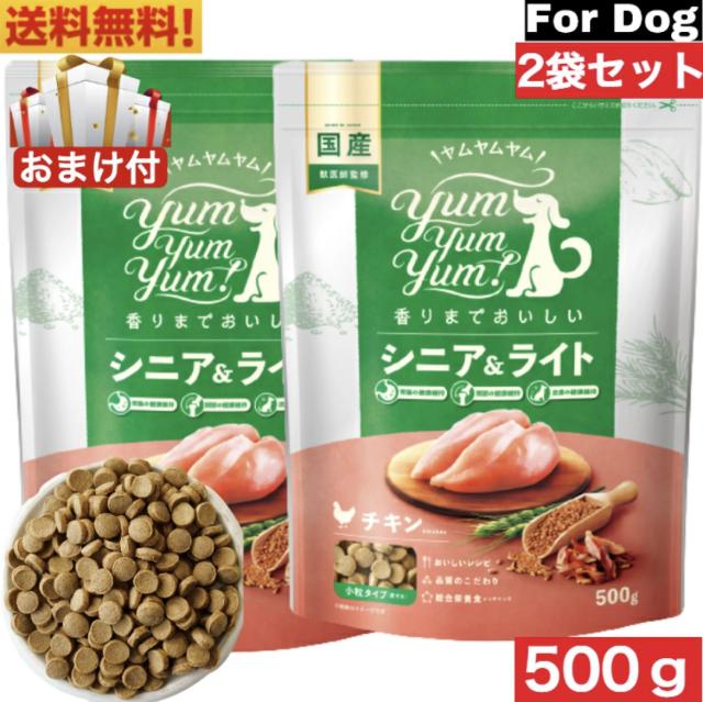 Yum Yum Yum! ヤムヤムヤム シニア&ライト チキン ドライタイプ 500g 2袋セット 正規品 国産素材 ドッグフード ドライフード 保存料 着色料 香料等 合成添加物 一切不使用 新鮮 国産 無添加 ヒューマングレード 小粒 犬 成犬用 アダルト 老犬用 シニア犬 お試し
