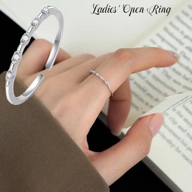 指輪 オープンリング レディース アクセサリー ラインストーン ビジュー 華奢 細め 細い 上品 きれいめ おしゃれ シンプル