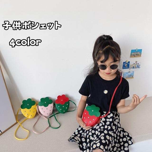 ポシェット ショルダーバッグ キッズ 子供 鞄 カバン イチゴ ストロベリー 斜め掛け 肩掛け ファスナー かわいい おしゃれ