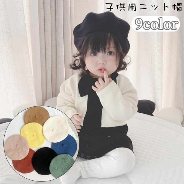ベレー帽 ニットベレー帽 ニット帽 ベレーキャップ 帽子 子供用 キッズ ベビー 女の子 男の子 無地 単色 シンプル 秋 冬