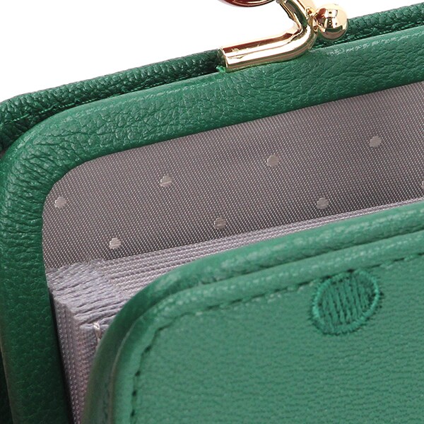 アクリル玉の付いたガマ口とドット刺繍がかわいいジャバラカードウォレット