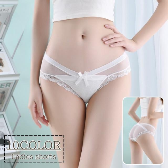 ヒップハンガーショーツ レディース ショーツ ヒップハンガー ローライズ パンツ 透け感 リボン フリル フリルレース かわいい