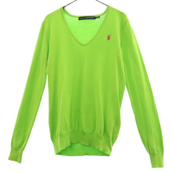 ラルフローレンスポーツ ロゴ刺繍 長袖 Vネック コットン ニット S グリーン RALPH LAUREN SPORTS セーター レディース