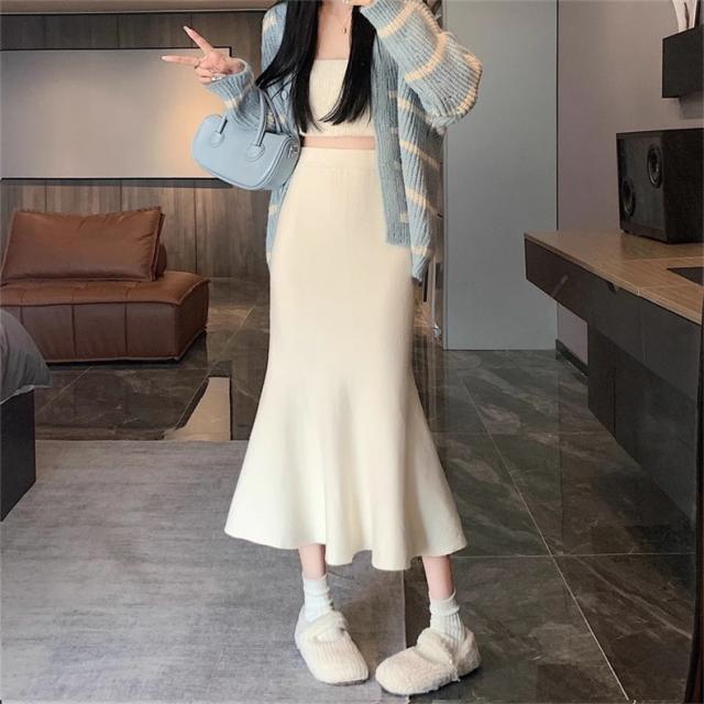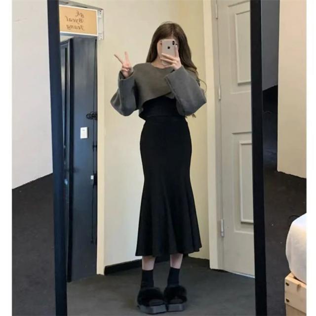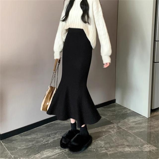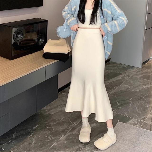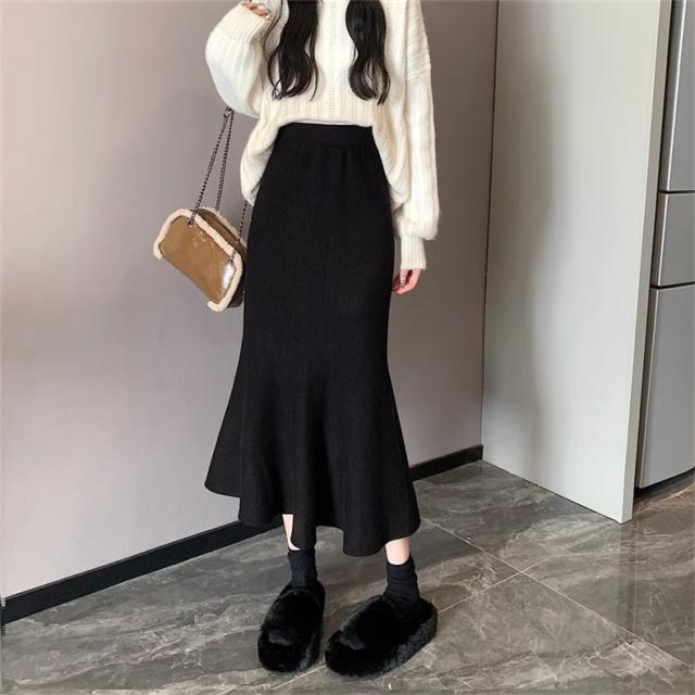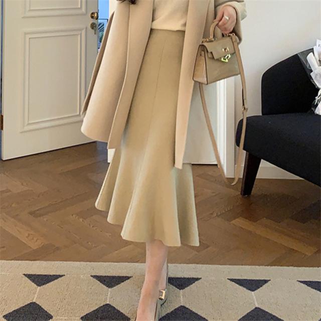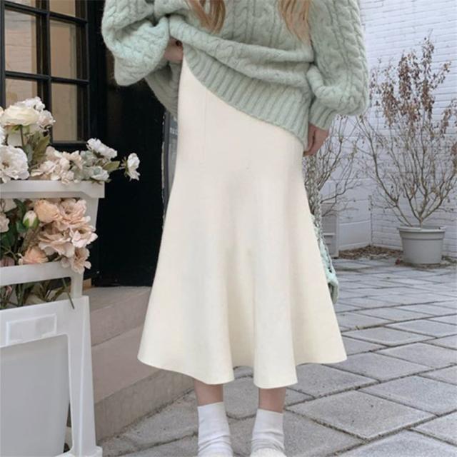 スカート レディース 冬服 ニット マーメイド ウエストゴム 無地 下半身を細く見せてくれる 嬉しいアイテム 女性らしく柔らかい印象に スタイルアップ