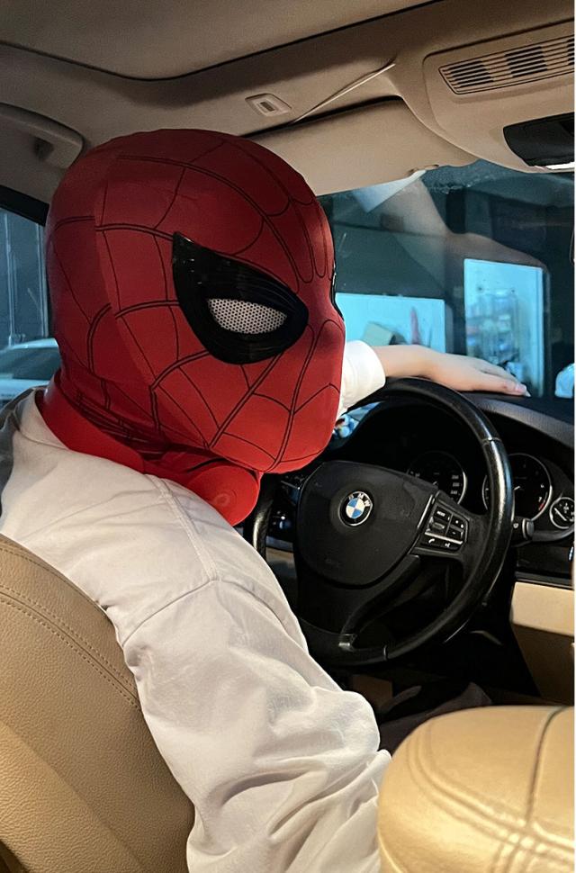 マスクの表面部分はプラスチックのシェルマスクでできていますので、顔の形が変形せず劇中のスパイダーマン特有のスラっとした顔を崩さず再現できます。