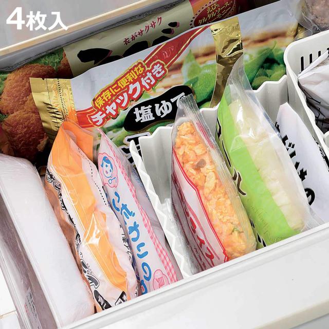 冷蔵庫収納 スキット 冷凍庫用仕切り板4枚組 ( 冷凍庫収納 冷蔵庫 冷凍庫 日本製 収納 仕切り板 整理 仕切り スタンド 冷凍庫収納 整理用品 お片付け 小物立て 冷蔵庫 収納 )
