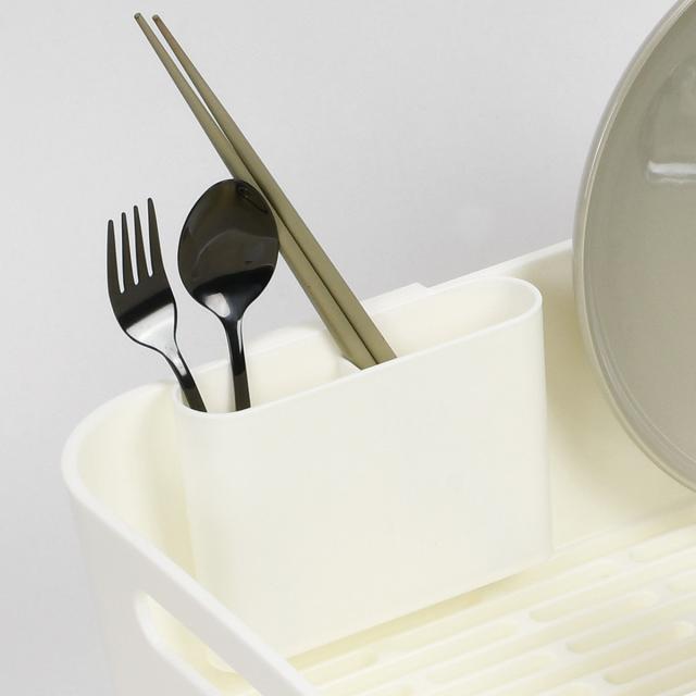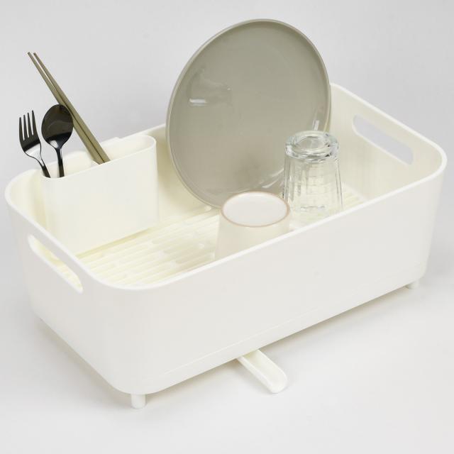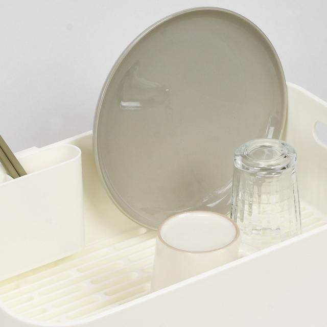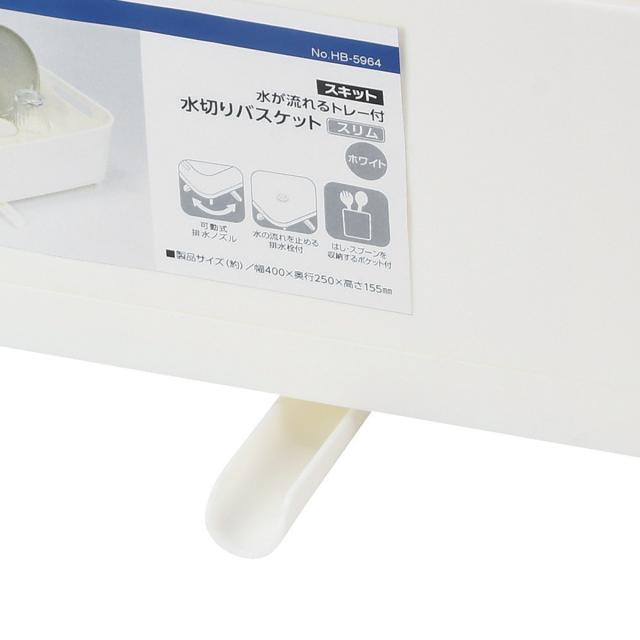 水切りラック スキット 水が流れるトレー付水切りバスケット スリム ホワイト ( 水切りかご 水切りカゴ 水切りバスケット 水切り シンク上 日本製 洗い物 食器洗い 食器 皿 乾燥 自然乾燥 洗物 コンパクト カトラリーポケット付き )