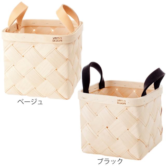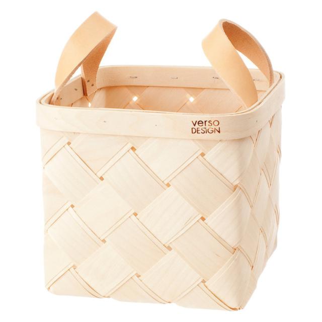 収納ボックス VERSO LASTU S バスケット 木製 ( 収納 カゴ かご 四角 幅18×奥行18×高さ18cm 天然素材 バーチ 白樺 収納かご 小物収納 手編み 持ち手 レザー ハンドメイド 小物入れ おしゃれ インテリア 玄関 リビング キッチン )