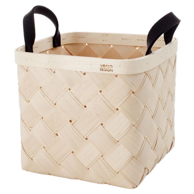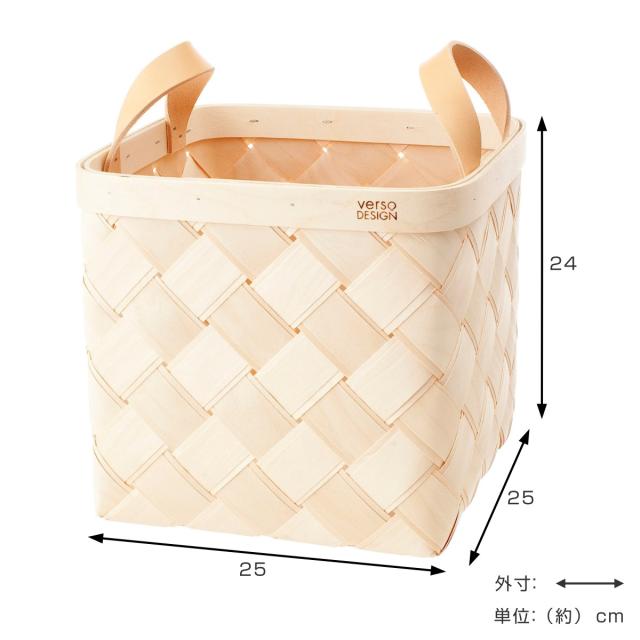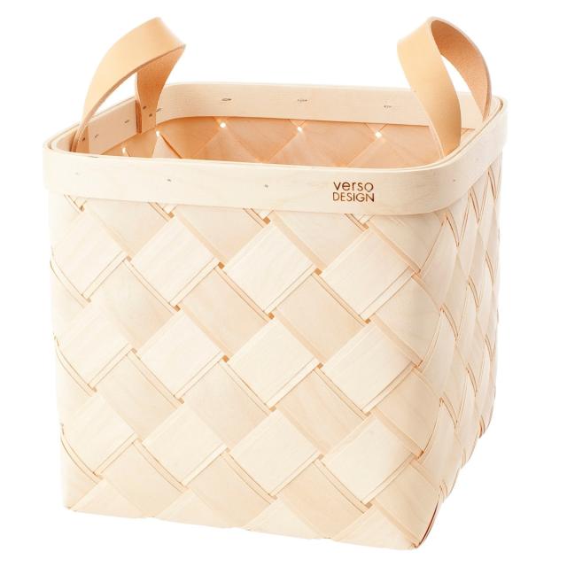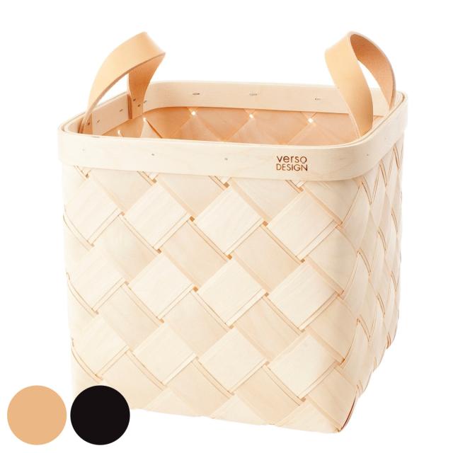 収納ボックス VERSO LASTU M バスケット 木製 ( 収納 カゴ かご 四角 幅25×奥行25×高さ24cm 天然素材 バーチ 白樺 収納かご 小物収納 手編み 持ち手 レザー ハンドメイド 小物入れ おしゃれ インテリア 玄関 リビング キッチン )