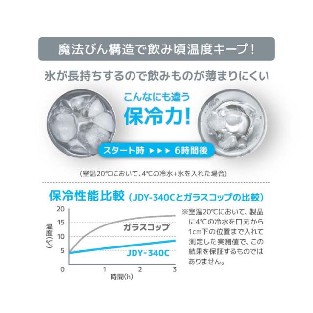 | 本体寸法:約幅7.5×奥行7.5×高さ13cm 重量:約0.2kg 容量:0.34L 口径:約7.3cm 保冷効力(1時間):7度以下 材質:本体:ステンレス鋼(アクリル樹脂塗装) ※食洗機対応モデルです。 |