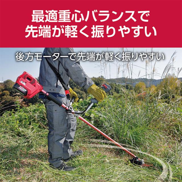 ●両手で左右から支える事ができて大きく横方向に動かせるため、草を刈る際の安定性に優れており長時間作業でも疲れにくく平坦地作業に適しています。