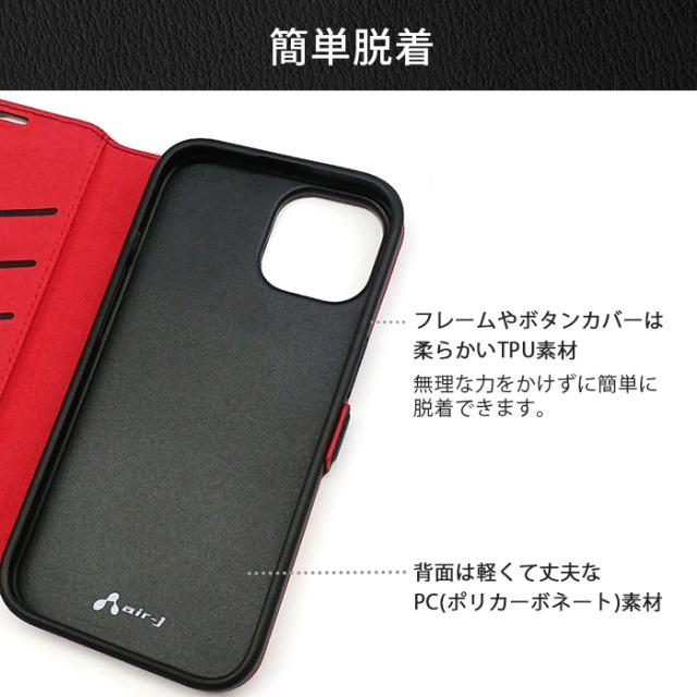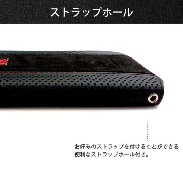 本革+アルカンターラ使用の手帳型ケース。