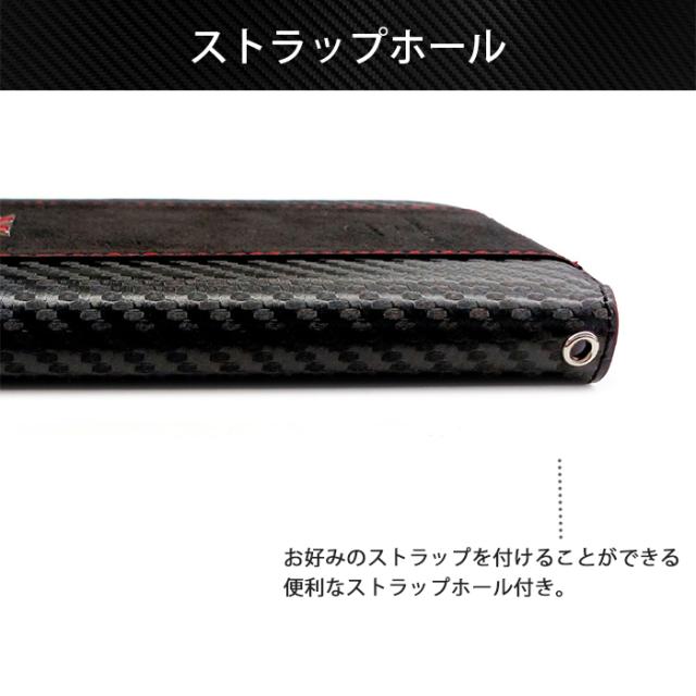 アルカンターラ&カーボン調の手帳型ケース。