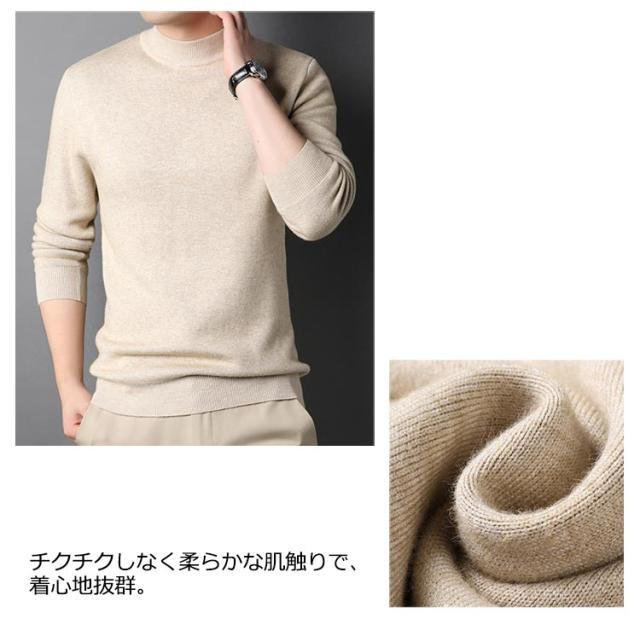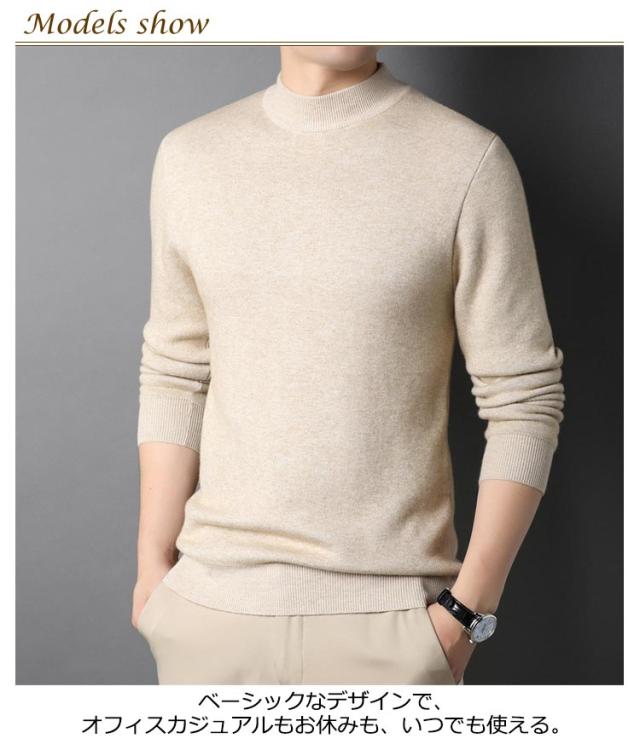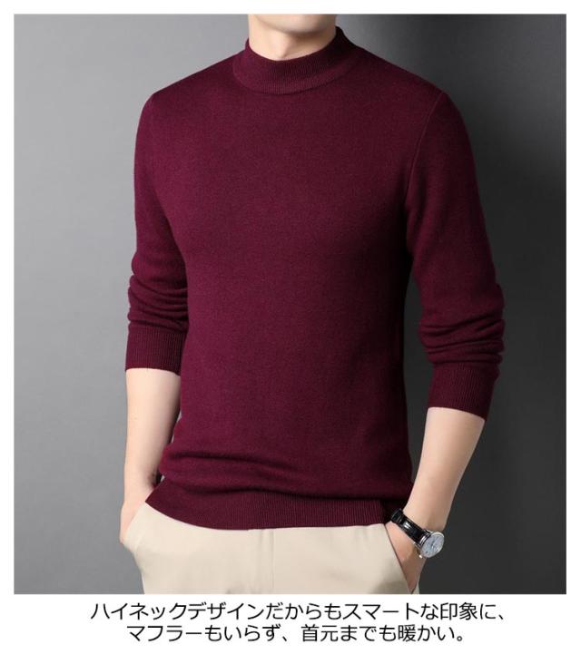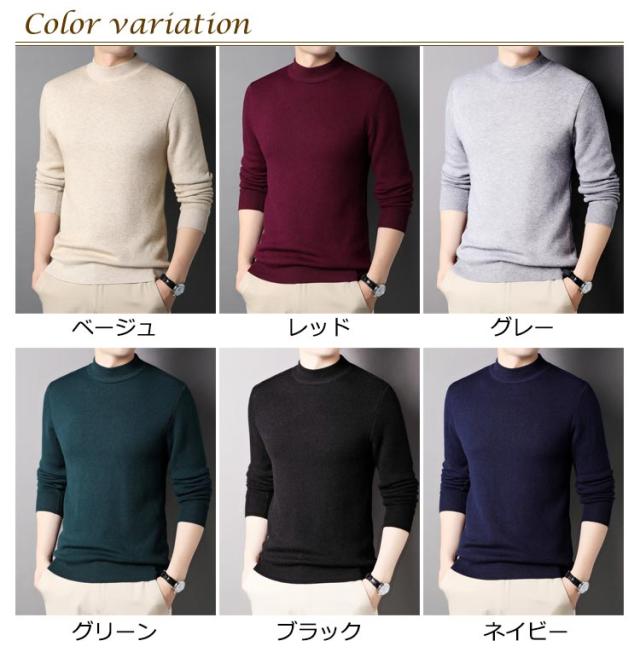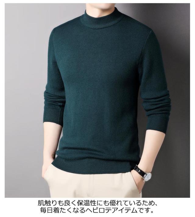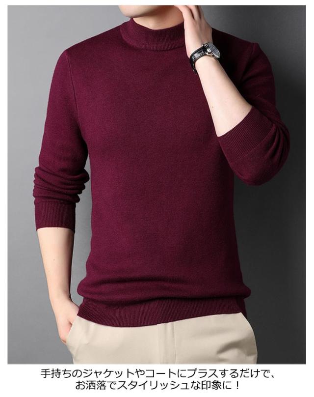 キレイめ ニットセーター おしゃれ 秋冬 薄手 モックネック メンズ シャツ ニット 送料無料 セーター シンプル ハイネック カジュアル 送料無料 無地 インナートップス ストレッチ