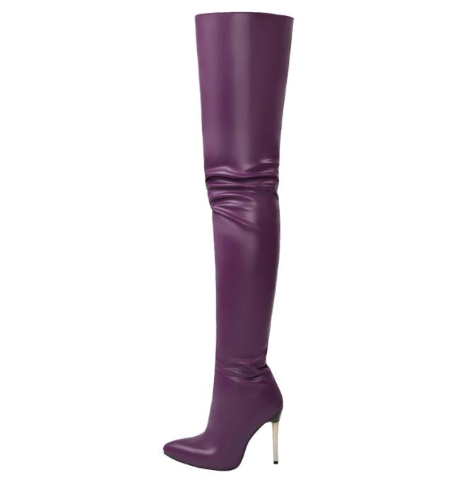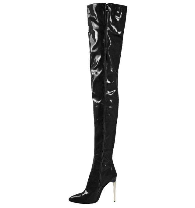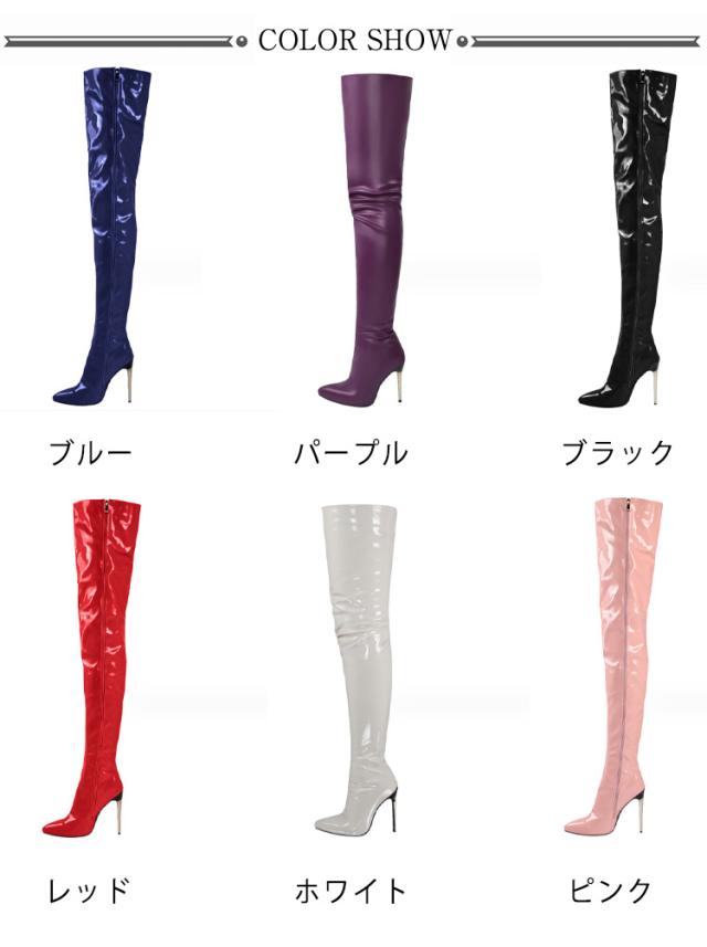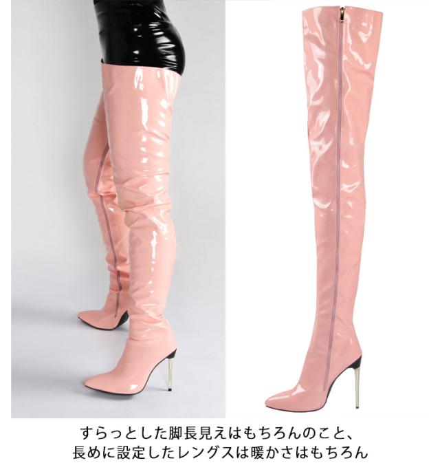 パーティー 仮装 ハイヒール ロング エナメル コスプレ靴 セクシー オーバーニーブーツ ポインテッドトゥ レディース イベント ニーハイブーツ ライブ ニーハイブーツ 衣装 細見え 11cmヒール サイドジッパー