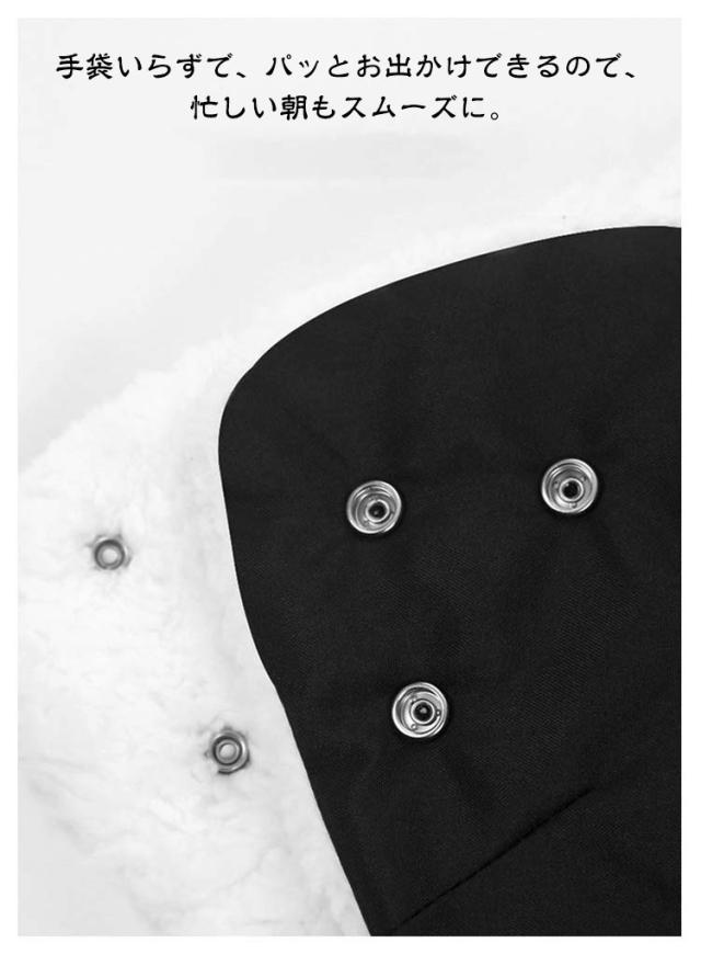 | 寒い冬、ベビーカー使いのママにお薦めなベビーカーハンドルカバー。 子供乗せベビーカーの手すりにつけてご使用いただけます。 手袋いらずで、パッとお出かけできるので、忙しい朝もスムーズに。 スマホ収納防水ポケットも付きで便利。 内側は肌触りの良いボアを使用。 公園 ・お買い物 ・通園 ・アウトドアなどのシーンに大活躍するアイテムです。 | |