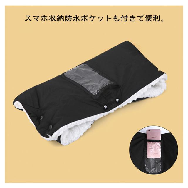 カバー ハンドル 手袋 防寒 ベビーカー 持ち手 簡単装着 保温 ベビーカー用品 あったか防寒 ふわふわ ボア ベビーカー スマホ収納ポケット付き 手すりカバー