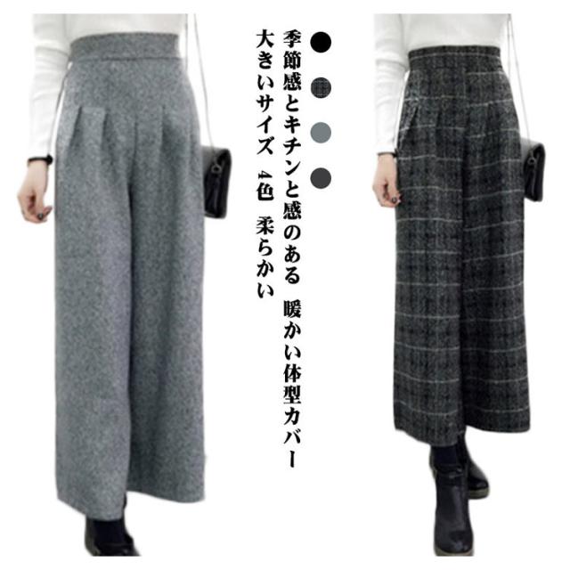 通勤 冬 黒 ワイドパンツ 秋冬 大きいサイズ ボリューム ゆったり パンツ アンクルパンツ 暖かい ワイドパンツ 無地 OL 韓国風 ブラック レディース さわやか INS風 きれいめ ゆったり 4色 柔らかい 可愛い おしゃれ
