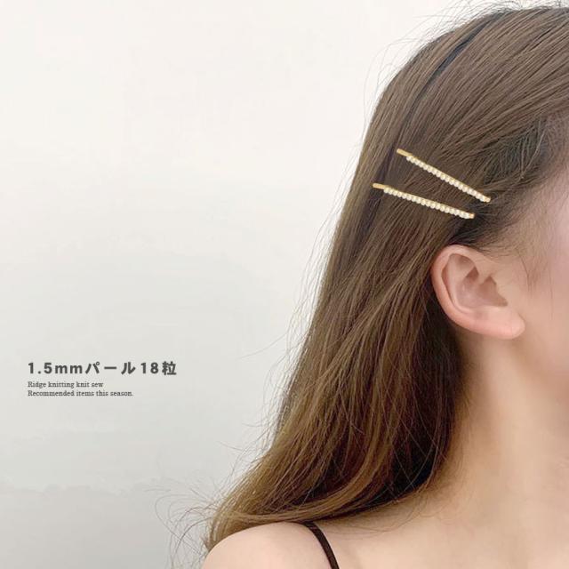 コットンパール ヘアピン 2本セット アメピン パール ゴールド レディース ヘアアクセサリー 髪留め スリム 細身 小粒 華奢 シンプル 上品 可愛い 大人 韓国 アクセ 小物 重ね付 選べる 1.5mm 3mm オケージョン 送料無料 (hak749)