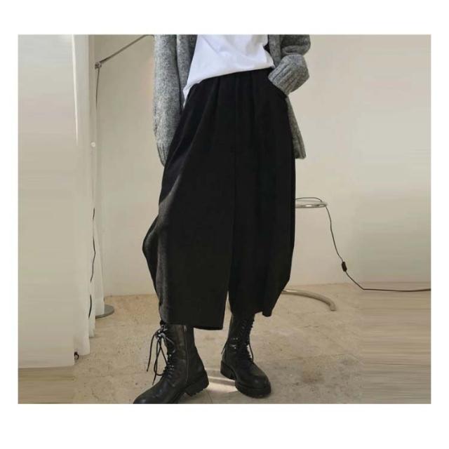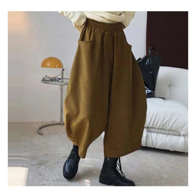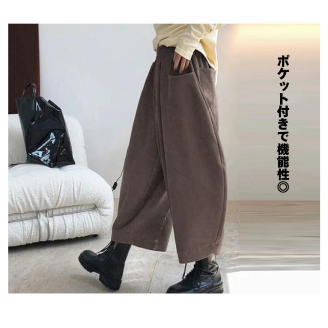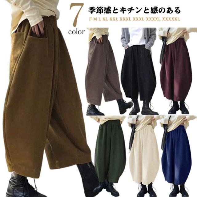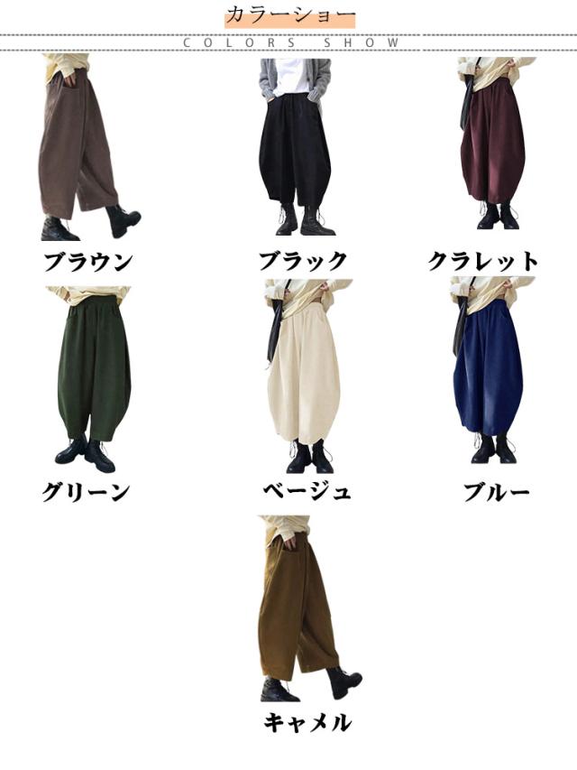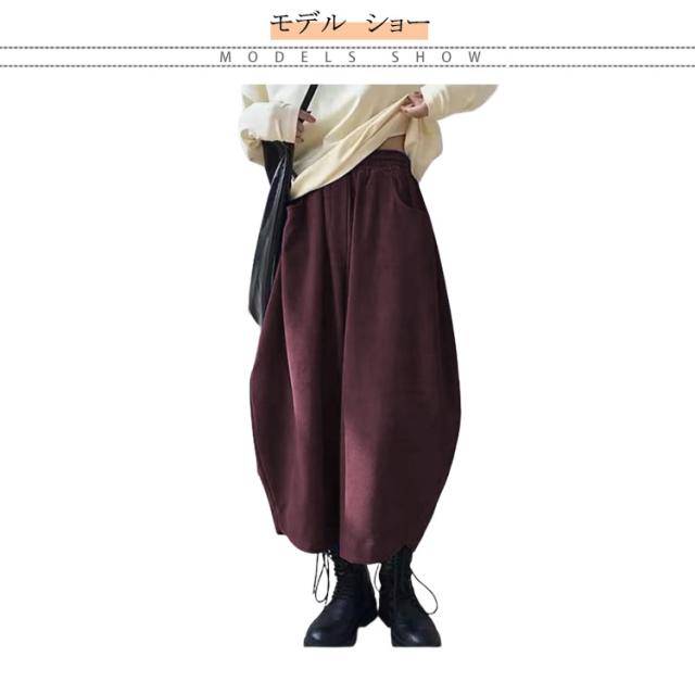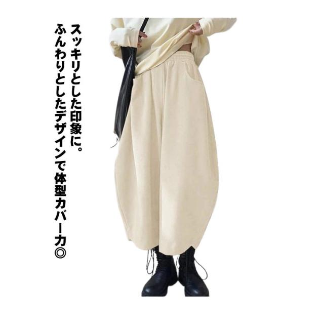 ワイドパンツ カラバリ豊富 ボトムス バルーンパンツ ゆったり ウエストゴム 黒 大きめ 冬 秋 おしゃれ バルーンパンツ ブラック ポケット 無地 シンプル レディース 韓国風 カジュアル ゆったり 全7色 秋服 冬服 厚手 大きいサイズ