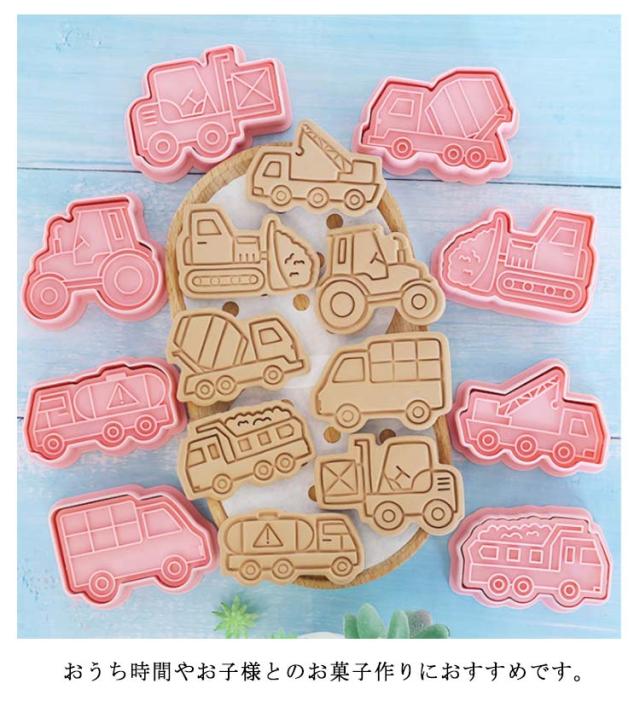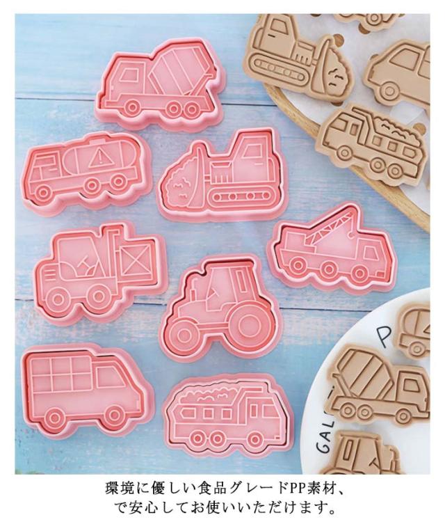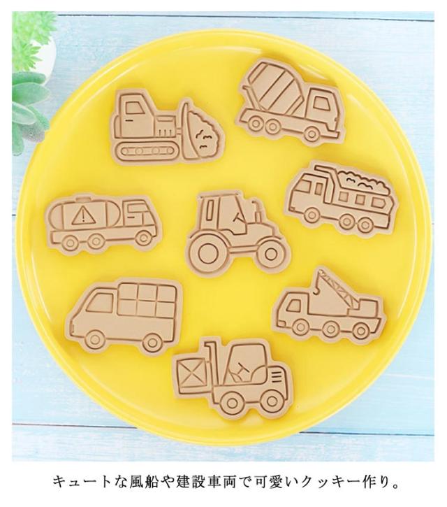| 手作り・ホームメイドに。乗り物抜き型8点セット。 キュートな風船や建設車両で可愛いクッキー作り。 環境に優しい食品グレードPP素材、で安心してお使いいただけます。 抜き型で輪郭を抜き、押し型で模様がつきます。 おうち時間やお子様とのお菓子作りにおすすめです。 子供でも押しやすいから、親子一緒にクッキーを作るのはいかがでしょう。 | |