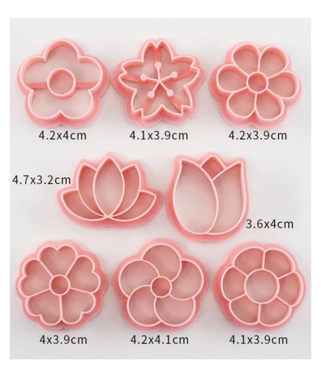 | 8個セット クッキー型。 いろんな柄があり、揃う手間を省く。 スタンプだからしっかり模様がついて簡単にかわいいクッキーの出来上がり。 | |
