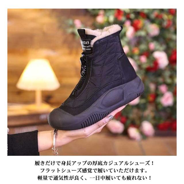 | 肉厚裏ボアで、保温性抜群、ストーブに包み込まれるように暖かい、厚底で身長アップできる、視覚的に4-55cm長く見える、スリムで背が高く見える、3色展開、どんなスタイルにも合わせやすい。 滑りにくさ! 雪や氷など濡れた道でも滑りにくい、優れたグリップ力が自慢の独自ソールを採用。ソールの形は、凹凸があり溝が深いものだとより安定感があります。 厚底ブーツ 非常に軽いので、ウォーキングにバッチリ!柔軟な軽便ないゴムソールを、人体工学工学よりの船型設計、美脚効果、歩きやすい 、あなたに一日中を着させて同じく疲れて感じることができません。 秋冬に必要な防寒・防滑・防水機能を兼ね備えたアウトドアテイストのスノーブーツです。シンプルなデザインで、スカート、パンツなどどんなファッションスタイルにも合わせやすい素敵なブーツ。毎日の通勤や通学、オフィスワークにもおすすめです。 冬ブーツレディースファ一の密度が高く、ソフトだからこそ履きまくってもへたりが少なく、いつまでもふわふわ。履きだけで身長アップの厚底カジュアルシューズ!フラットシューズ感覚で履いていただけます。軽量で通気性が良く、一日中履いても疲れない! | |