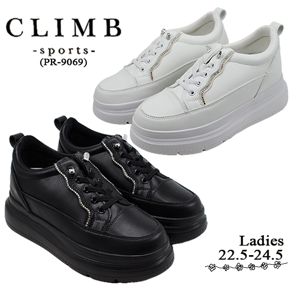 スニーカー スリッポン レディース 厚底 ブラック ホワイト おしゃれ ファッション カジュアル ゴム紐 CLIMB SPORTS クライムスポーツ PR9069 【レディース】