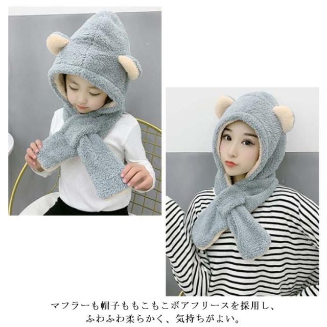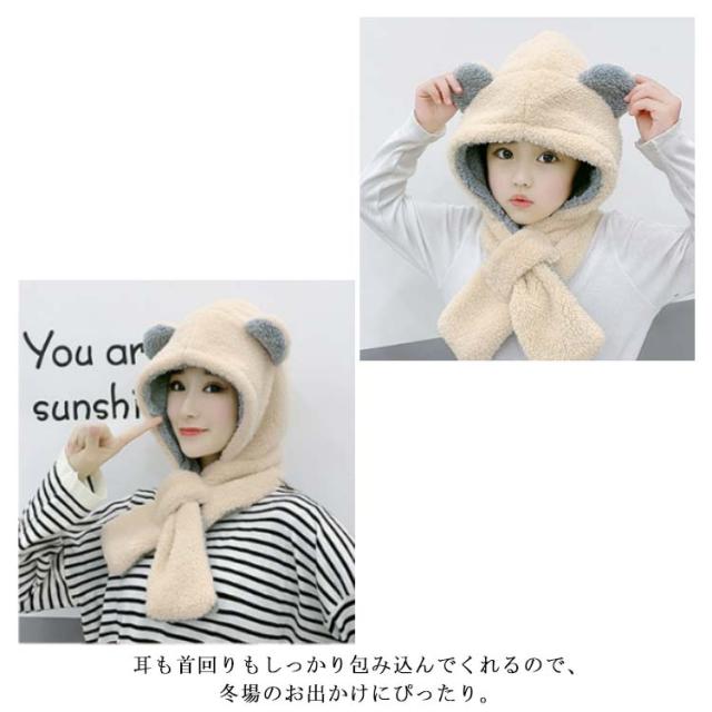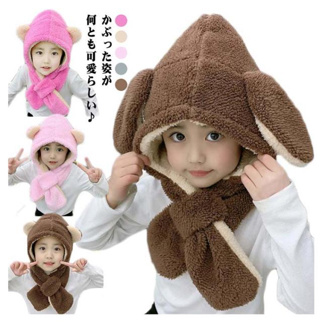 防寒 キッズ マフラー 女の子 帽子 うさぎ ベビー もこもこ 耳付き帽子 うさ耳 ベビー 赤ちゃん 被り物 くまみみ コスプレ ふわふわ ネックウォーマー フードウォーマー バラクラバ キッズ マフラー一体型帽子 子供用 秋 冬 雪遊び クリスマス くま 衣装 ハロウィン
