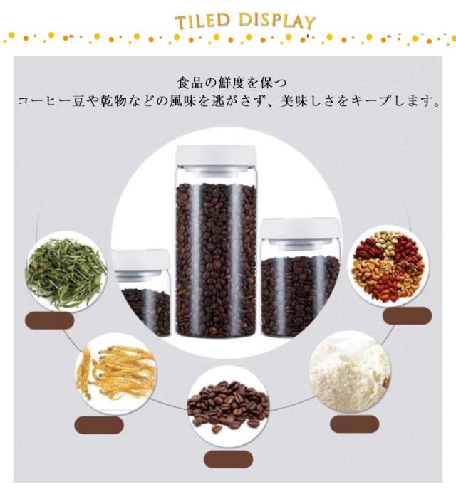 | 500ml 800ml 真空保存容器 食品の鮮度を保つ コーヒー豆や乾物などの風味を逃がさず、美味しさをキープします。 厚みはあり、丈夫で安全に使うことが出来ます。 口が大きいので中まで手が入り、お手入れがしやすいです。 | |