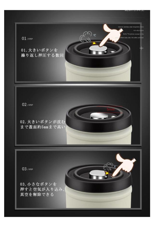 | 750ml 押?真空引持続性の保鮮 酸化しないで味を保つ高真空 頂部を押圧することでタンク内の余分なガスを排出し、食品と酸素との結合を減らす、食品の保鮮性を長くする目的を達成する 操作が簡単で複雑な真空ポンプにさよなら 操作が簡単で、上部を押すだけでエアを抽出できお年寄りや子供でも使いやすい | |