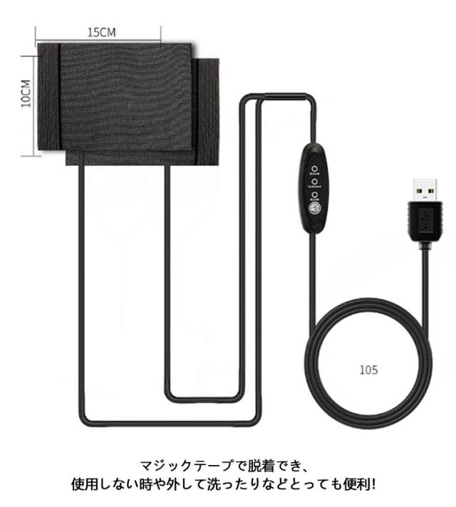 | サイズについての説明 | ヒーターサイズ:(W)約15cm×(H)約10cm ケーブル長:約105cm 入力電圧:DC5V 入力電流:2A ご注意:USB出力が5V/2Aに対応している必要があります。 |