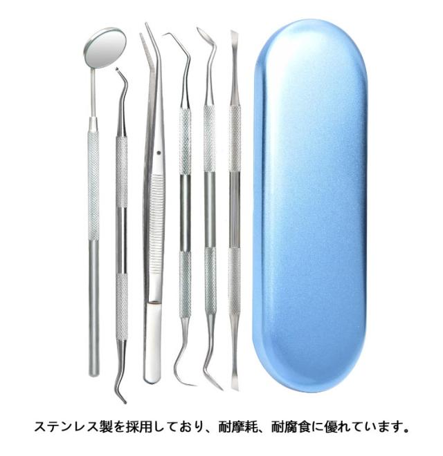 歯石とり プロ仕様 歯石取り スケーラー 歯垢 ヤニとり ステンレス製 先極細 自分で取る 歯石除去 歯科ツールセット 口腔ケア器具 虫歯 口腔清潔 自宅用 6点セット 歯石取り 収納ケース付き