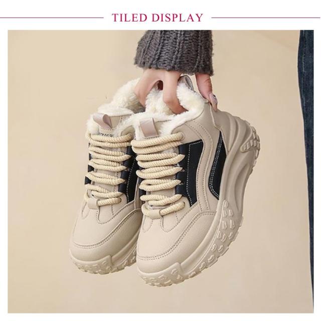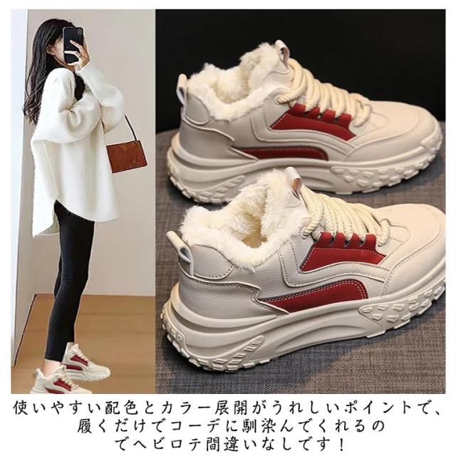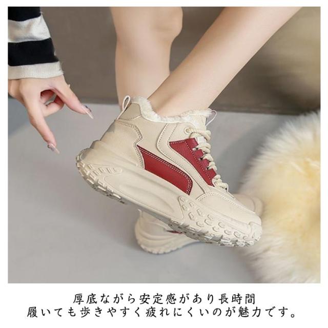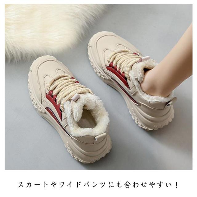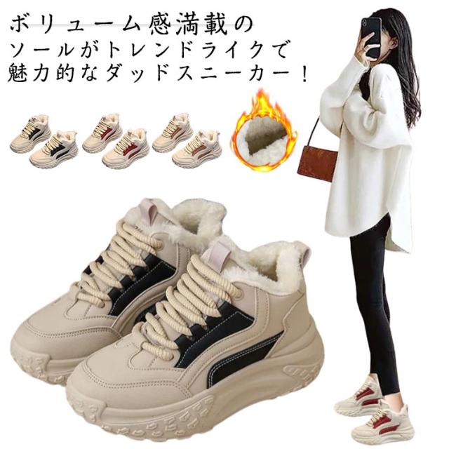 歩きやすい ダッドスニーカー 厚底スニーカー 韓国 冬 レディース 通学 秋 保温 暖かい 5cmヒール スニーカー 厚底スニーカー スノーシューズ 軽量 厚底 裏起毛 身長アップ 美脚 カジュアル 防寒靴 通勤 ウォーキングシューズ ベージュ 黒 赤 おしゃれ