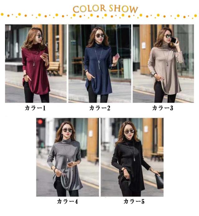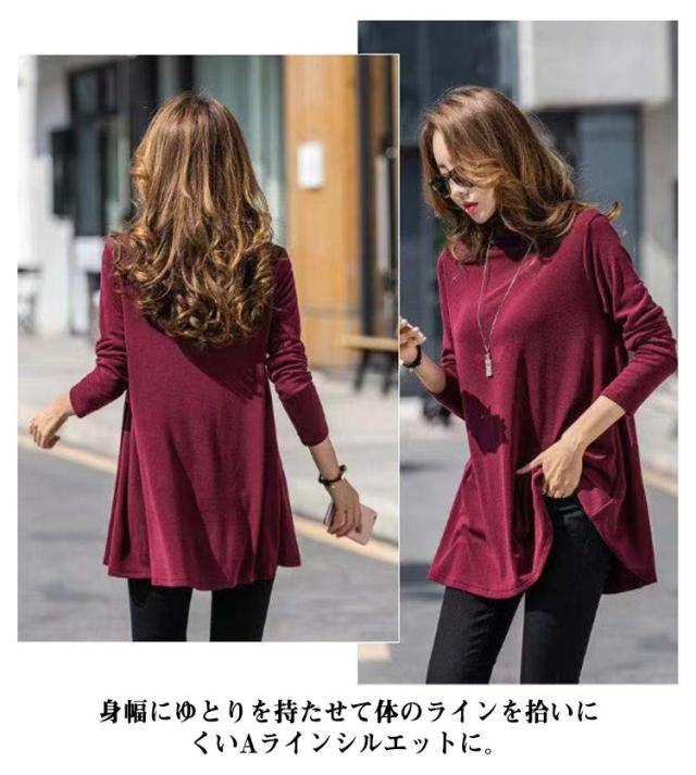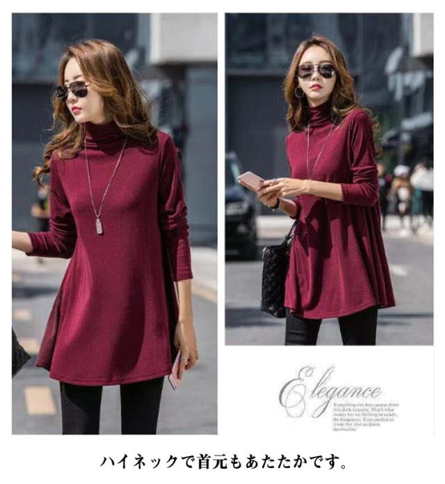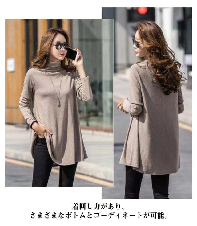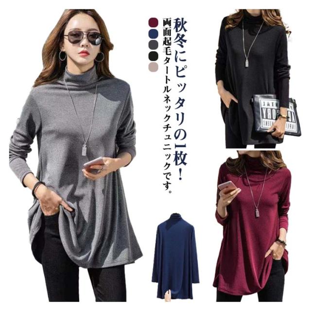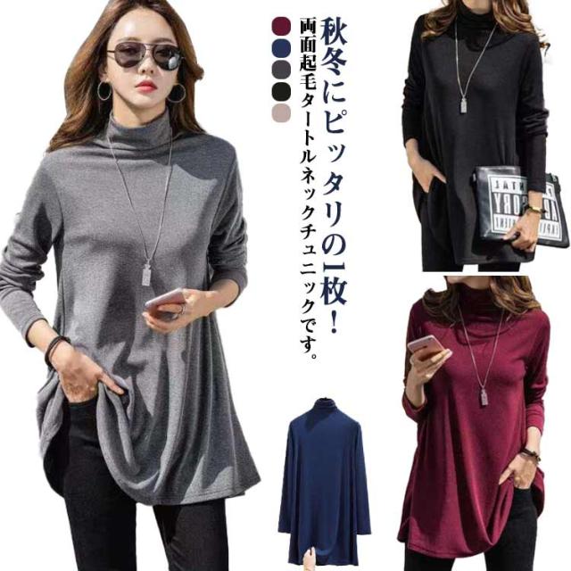 両面起毛 チュニック 起毛 レディース タートルネック ハイネック カットソー ロングTシャツ ロング丈 tシャツ 長袖 防寒 あったか 暖かい トップス インナー 着痩せ トレーナー 秋 冬 重ね着 シンプル かわいい 通勤 おしゃれ S M L XL 2XL 3XL