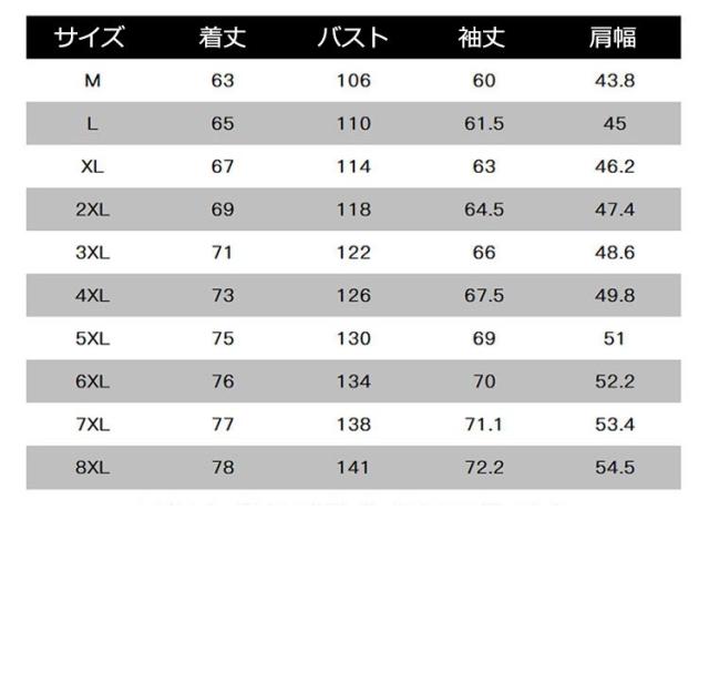 | サイズ | M L XL 2XL 3XL 4XL 5XL 6XL 7XL 8XL |