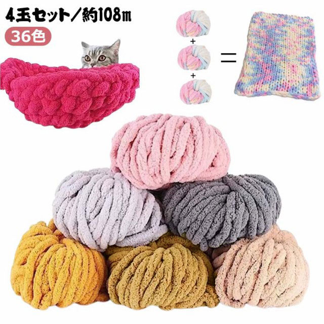 毛糸 毛糸 2cm チャンキーニット チャンキーヤーン チャンキーニット モールヤーン シェニールニット 4玉 毛糸 極太 ベビーベッド 編み物 手芸 36色 モコモコ チャンキーニット ブランケット ふわふわ ベッドガード クッション 極太毛糸 毛糸 手芸