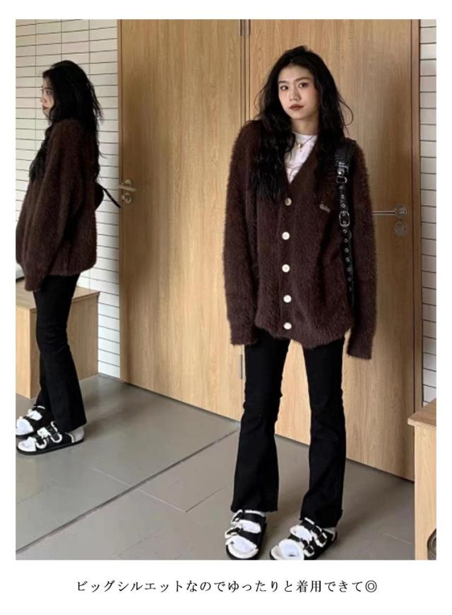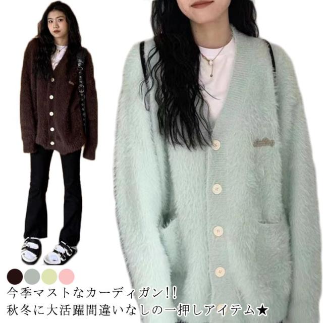 シャギー あったか コーディガン 秋 シャギー Vネック 冬 レディース 羽織り ニット トップス ふわふわ カーディガン 長袖 アウター もこもこ トップス シャギーニット シャギー 暖かい かわいい ゆったり 体型カバー 可愛い シンプル カジュアル 大人