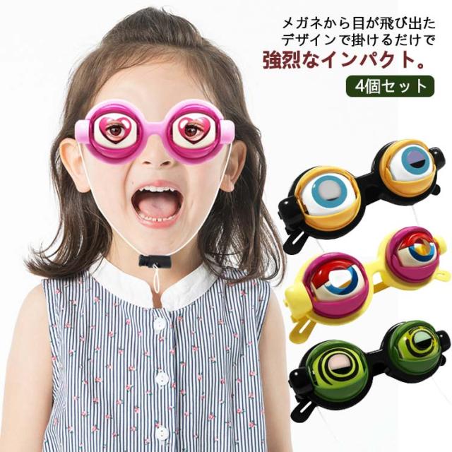 4個セット ザコシショウ コスプレ 目が動く眼鏡 パーティー ジョークグッズ おもしろメガネ おかしいパーティーメガネ クレイジーアイズ メガネ イベント用 仮装グッズ めがね 変装用 子供 大人 おもちゃ