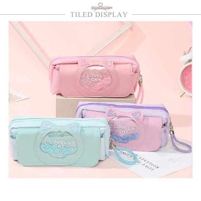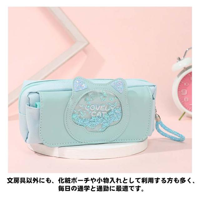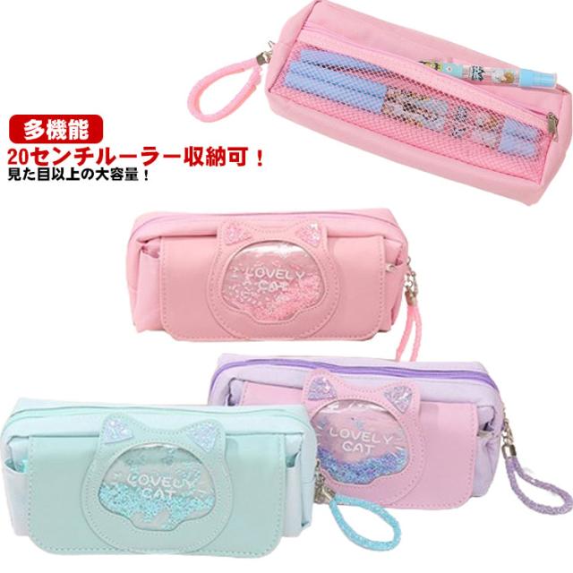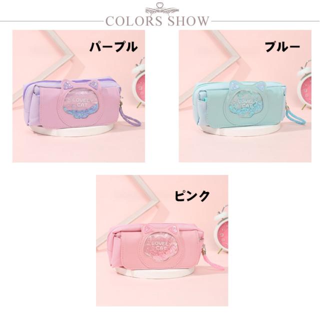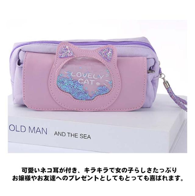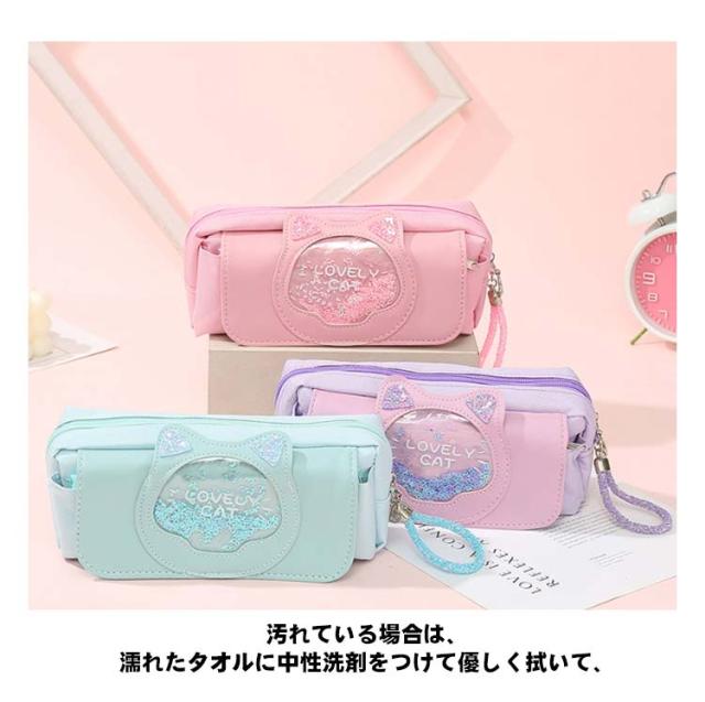 | 20センチルーラー収納可! 見た目以上の大容量! たくさんの文房具を収納できます。 開きやすいファスナータイプは、さっと中身を取り出すのでとても便利です。 文房具以外にも、化粧ポーチや小物入れとして利用する方も多く、毎日の通学と通勤に最適です。 可愛いネコ耳が付き、キラキラで女の子らしさたっぷり お嬢様やお友達へのプレゼントとしてもとっても喜ばれます。 汚れている場合は、濡れたタオルに中性洗剤をつけて優しく拭いて、 汚れたものは簡単に拭き落とれます。 | |