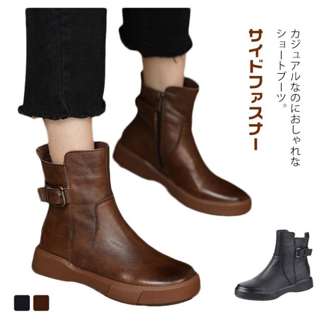 アンクル丈 レディース PU 合皮 ショートブーツ ブーツ ローヒールブーツ ショート丈 裏起毛 美脚ブーツ トレロ ショートブーツ 秋冬 靴
