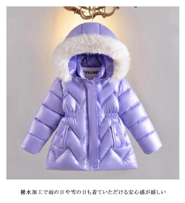 | 女の子防寒保温効果抜群のあったかジャケット ファー付きフード、もこもこ超かわいい! ジッパーとスナップボタンダブルの開閉し、保温性を高めます。 リブ編みの防風性のある袖口 撥水加工で雨の日や雪の日も着ていただける安心感が嬉しい 普段用にも通学にもおススメ! | |