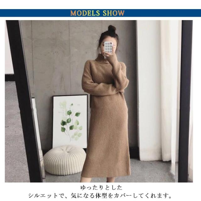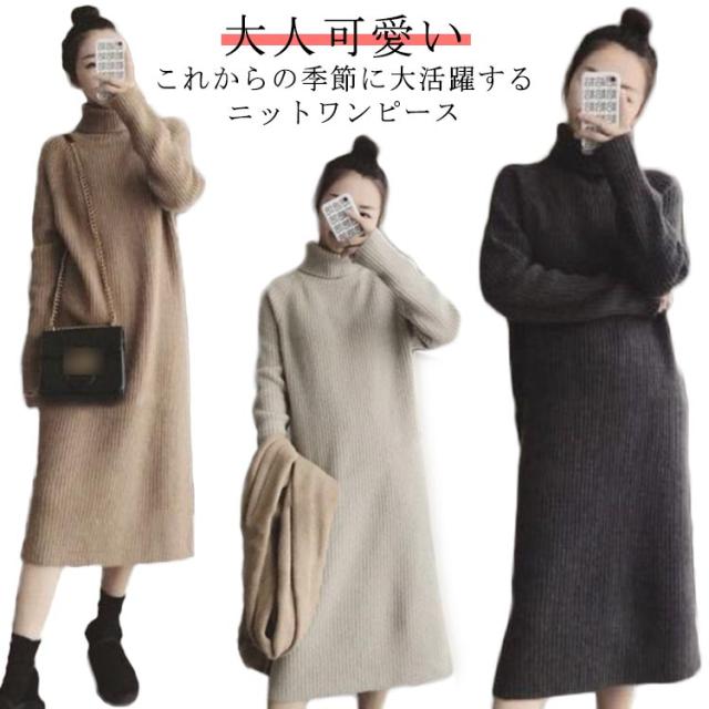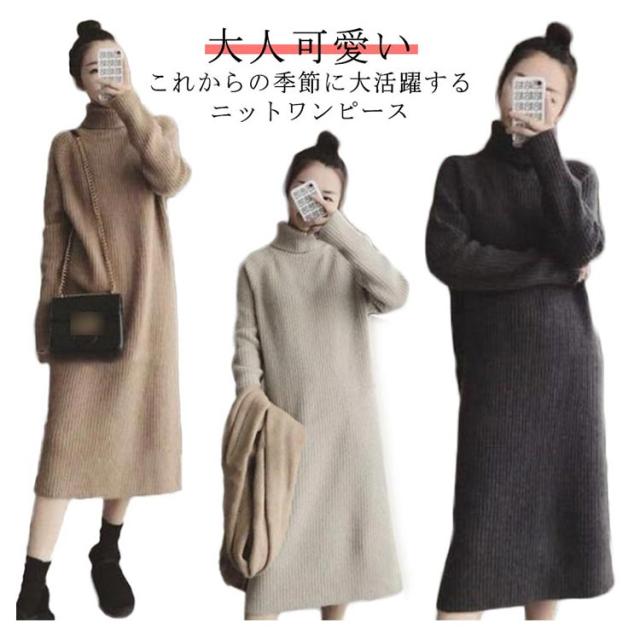 ニットワンピース レディース 大人可愛い ニットワンピース マキシ丈 ワンピース 長袖 ニット 秋冬 セーター ゆったり 着?せ ロングワンピース あったか 体型カバー 大きいサイズ 重ね着 ゆるニットリブニット 通勤 通学 膝下