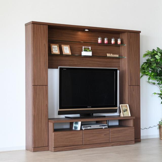 テレビボード 壁面収納 ハイタイプ LEDライト付 幅190cm ( 開梱設置 TV台 テレビ台 大容量 収納 壁面 ライト付 家具 完成品 TVラック AVラック リビング 引出し 可動棚 ブラウン ナチュラル ホワイト グレー )