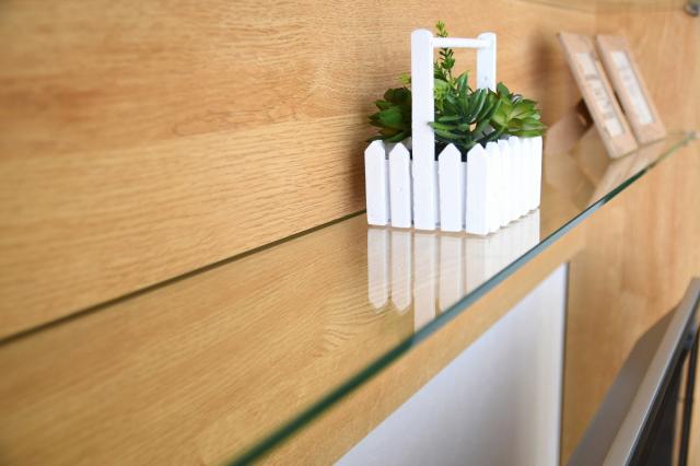 ●上段のオープンスペースはディスプレイも楽しめるLEDライト付きのガラス棚板です。