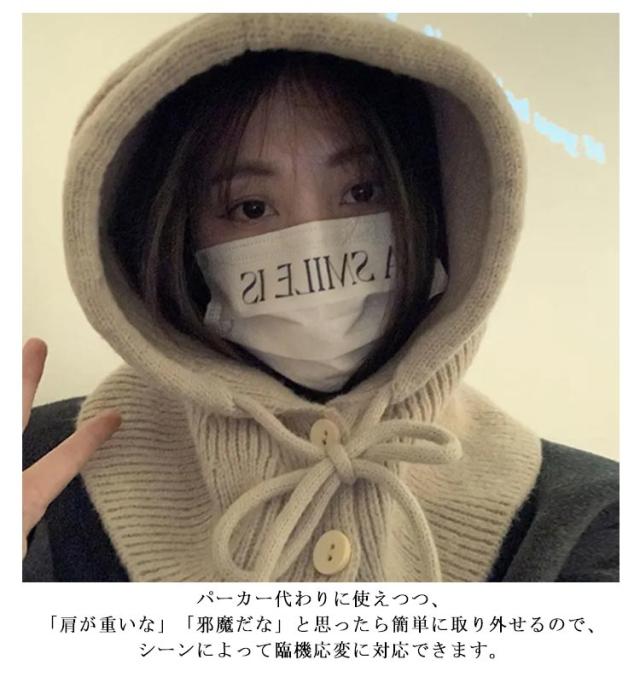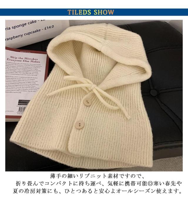 | シンプルで使いやすい、リブニット素材のつけフード登場! 老若男女問わず合わせやすいシンプルデザイン! 寒い日や風の強い日にはフードをかぶって、首元のみならず、頭や耳元もしっかり防寒! パーカー代わりに使えつつ、「肩が重いな」「邪魔だな」と思ったら簡単に取り外せるので、シーンによって臨機応変に対応できます。 薄手の細いリブニット素材ですので、折り畳んでコンパクトに持ち運べ、気軽に携帯可能◎寒い春先や夏の冷房対策にも、ひとつあると安心よオールシーズン使えます。フィット感がある細めのシルエットなので、極寒の時は上から更にマフラーやニット帽などの防寒具をプラスしたり、気軽なレイヤードスタイルにおすすめ。 | |